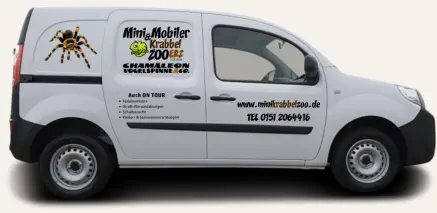Seit mittlerweile über 15 Jahren bin ich mit meinen Krabbeltierchen und dem mobilen KrabbelZoo erfolgreich zu verschiedenen Events zu Ihnen unterwegs. Ob an Schulen, Familienveranstaltungen, Großveranstaltungen, Dorffesten oder auch Kindereinrichtungen und Seniorenheimen. Dies aber nur von Mitte März bis Mitte Oktober. Ausnahmen sind schulische Einrichtungen, hier nur mit eingeschränkten Tierbestand.Für die Präsentationen werden natürlich auch Urlaubstage eingeplant, da die meisten Veranstaltungen auf die Wochenenden (oder Feiertage) fallen. Bitte habe Sie Verständnis, dass ich keine Buchung on Tour von heute auf morgen zusagen kann, da ich auch Berufstätig bin. Urlaubstage muss ich daher natürlich auch mit meinem Arbeitgeber absprechen, welches bisher immer sehr gut geklappt hatte.An den Wochenenden & Feiertagen kann eine on Tour-Präsentation jedoch auch „spontan“ bei mir gebucht werden, mind. jedoch 3 Std. vor der eigentlichen Zeit. Veranstaltungen, ob nun Firmenevents, Schulbesuche, Schulanfänge, Geburtstags- oder Hochzeitsfeiern o.ä. kann man auch ein Jahr im voraus bei mir buchen!1 Monat vor dem eigentlichen Termin bekommen Sie von mir die Rechnung per E-Mail gesendet. So haben sie die Möglichkeit, am Präsentationstag die vereinbarte Summe bar oder per Kreditkarte zu bezahlen. Bezahlung per Rechnung nur möglich, wenn die Rechnungssumme nach spätestens 7 Tagen überwiesen wird.On Tour werden immer 2 Std. eingeplant, es kann auch gern gesteigert werden. Unter 2 Std. berechne ich trotzdem den vollen Preis (man kann sich auch einigen), da die Logistik natürlich immer gleich bleibt. Preise und Tiere können Sie VOR dem Event bei mir anfragen! Preise für on Tour und vor Ort unterscheiden sich natürlich.