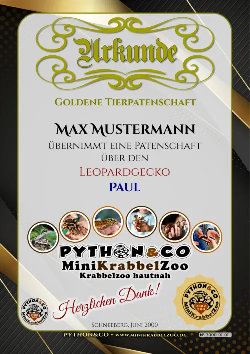 persönliche Patenschaftsurkunde mit Patencard, dazu ein Bild ihres Tieres, eine namentliche Erwähnung in unseren