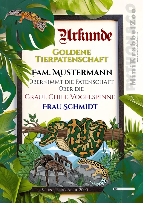 Unterstützung erhalten Sie eine persönliche Patenschaftsurkunde mit Patencard, dazu ein Bild ihres